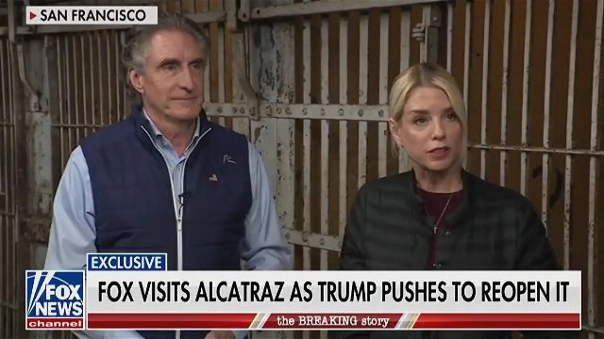 La procuratrice generale degli Stati Uniti Pam Bondi e il segretario dell'Interno Doug Burgum hanno visitato il carcere di Alcatraz, che il …