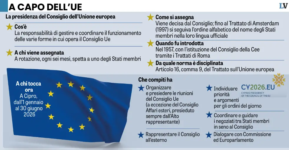 In virtù dell’abituale rotazione, la presidenza dell’Unione ora tocca a Nicosia, che non ha mai reciso i legami con Mosca.Una mattina mi sono svegliato e ho trovato un cipriota. Allarme compagni europei: da ieri è scattato il semestre di presidenza di uno degli Stati più piccoli e tradizionalmente più legati a Mosca di tutta l’Ue. Urge richiamo alla sensibilità democratica dell’intero collettivo di Bruxelles: i tailleur di Ursula, la faccia tosta di Macron e financo le gaffe di Kaja Kallas dovranno fare i conti con il peggiore dei nemici interni, la rotazione delle poltrone di comando sulla tolda dell’Unione. Il meccanismo bizantino, figlio malato di un sistema evidentemente decotto, prevede infatti che la presidenza del consiglio dell’Ue, l’organo che riunisce gli Stati membri e che dunque delinea le linee strategiche ed elabora le politiche estere e di sicurezza, passi di mano ogni sei mesi. E dall’1 gennaio il delicato e prestigioso incarico è passato a Cipro, già paradiso degli oligarchi turchi, per anni hub finanziario della Russia e legato a Mosca da antichi interessi comuni in campo energetico e militare. O partigiano portami via, che mi sento di morir.Continua a leggere