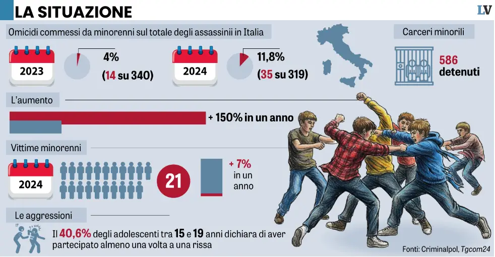 Il killer sorvegliato a vista in cella. Prima dell’omicidio, il messaggio choc: «Ti sistemo». Oggi pure Valditara al vertice in Prefettura. Altro accoltellamento fuori scuola a Sora: fermato un diciassettenne. Accettate a Perugia: denunciati in quattro, tre sono minorenni.«Domani ti sistemo io», poi ha portato un coltello a scuola e ha ucciso il compagno di classe per «una foto scattata con una ragazza». Gli inquirenti stanno mettendo insieme i tasselli della tragica aggressione che venerdì mattina ha portato alla morte di uno studente di soli 18 anni. Youssef Abanoub è stato colpito mentre era in classe nell’istituto Einaudi-Chiodo di La Spezia da uno studente della stessa scuola. È stato proprio Zouhair Atif, 19 anni, a raccontare agli investigatori il «motivo» di quell’aggressione: la gelosia per una foto scattata con una ragazza. Atif, marocchino residente ad Arcola, è stato fermato per l’omicidio di Youssef. Continua a leggere