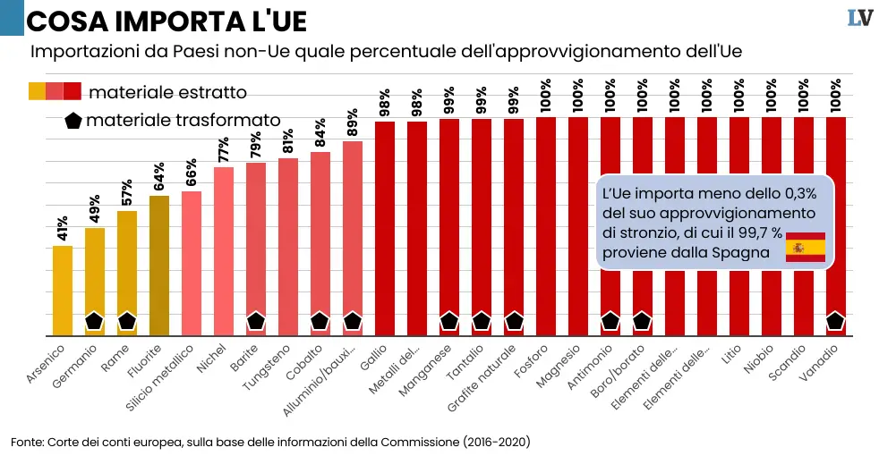 La Corte dei Conti Ue smonta la strategia verde sui minerali critici dell’Europa. Donald Trump investe 12 miliardi nelle riserve strategiche.L’atteso rapporto della Corte dei conti dell’Unione europea sulla strategia della Commissione per i materiali critici non delude le attese e rappresenta una sonora bocciatura dell’operato di Ursula von der Leyen. L’Ue rischia di restare a corto di materie prime per le energie da fonti rinnovabili, dice la Corte con sede in Lussemburgo nel comunicato stampa che accompagna il rapporto. Ottantadue pagine severissime nei contenuti.Continua a leggere