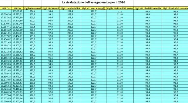 Assegno unico, di quanto aumenta nel 2026? Simulazione importi per fascia Isee. La tabella con la rivalutazione