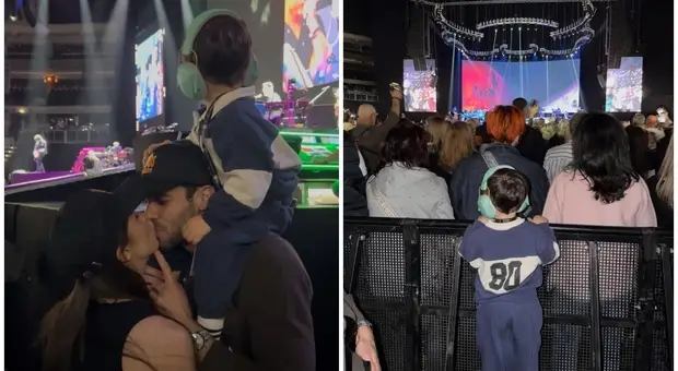 Aurora Ramazzotti al concerto del papà Eros con Goffredo Cerza e il piccolo Cesare: «Ti porto dove c'è musica». Il camerino riservato