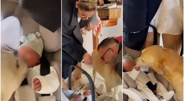 Briga e Arianna Montefiori portano a casa la piccola Allegra, ma la tenera reazione del cane Baires scatena le critiche: «Non deve leccarla in faccia»