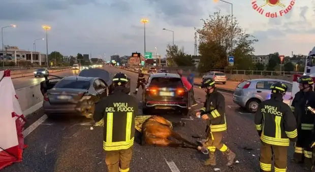 Cavalli in fuga dal maneggio finiscono sulla statale, maxi incidente con tre auto: cinque feriti, morto un animale