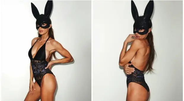 Elisabetta Canalis, il costume di Halloween da coniglietta di Playboy: il body in pizzo e la maschera con le orecchie