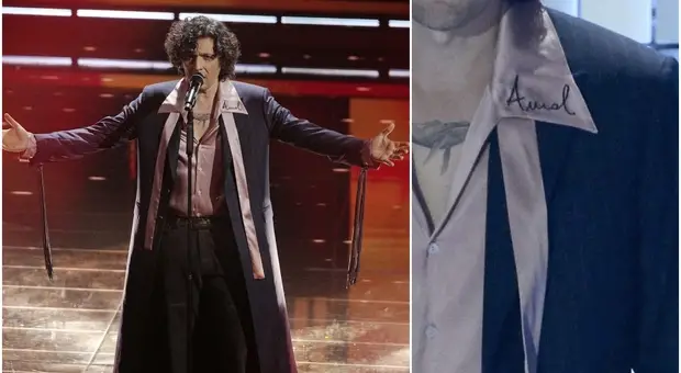Ermal Meta, il significato di ?Amal? sul colletto della camicia: ?«Una bambina senza nome, ma forse ha tutti i nomi»