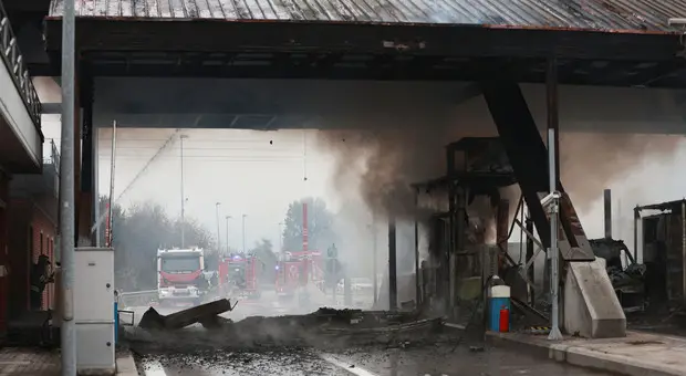 Incendio in autostrada, in fiamme il casello di Brescia sud: A21 chiusa al traffico, la colonna di fumo visibile a chilometri di distanza