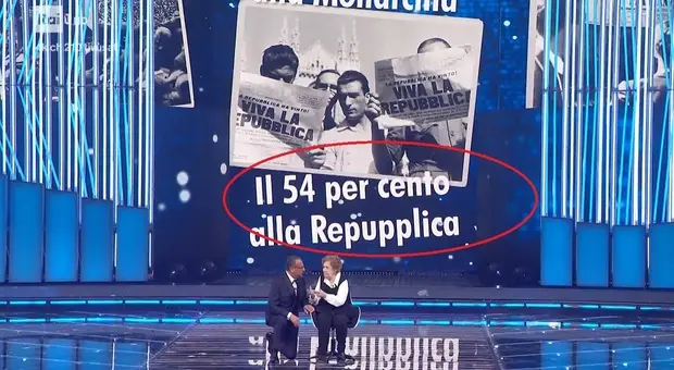 Sanremo, l'incredibile refuso nella grafica Rai: Repubblica diventa "Repupplica" durante l'omaggio con Gianna Pratesi al referendum del '46