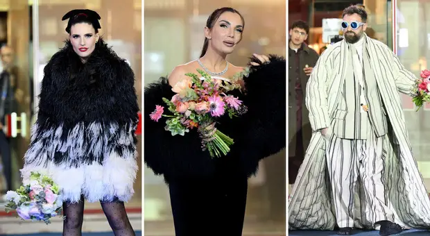 Sanremo, pagelle look blu carpet: Ditonellapiaga Crudelia (8), Lamborghini classy (7), Dargen pigiama party (5)