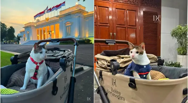 Scorta e passeggino da 6mila euro per il gatto del presidente dell'Indonesia: «Proteggo Bobby come la mia famiglia»