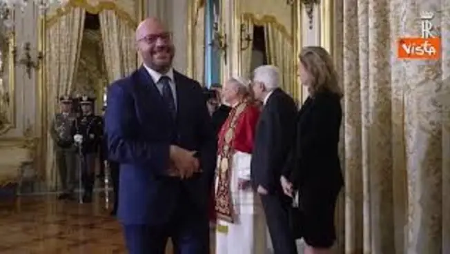 Papa Leone al Quirinale con Mattarella stringe la mano a Meloni e Ministri