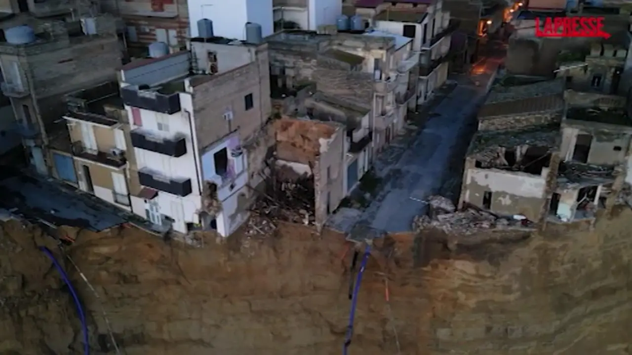 Niscemi vista dalle riprese del drone dal lato della costa franata ha un'atmosfera sospesa. Case sventrate a vista e in bilico sul precipizio, strade desderte in quella parte della cittadine dove 1300 dei suoi oltre ventimila abitanti hanno dovuto lasciare le case nella zona rossa. Nel comune in provincia di Caltanissetta prosegue lo stato di emergenza a seguito della grave frana che continua a dare segni di instabilità del terreno.