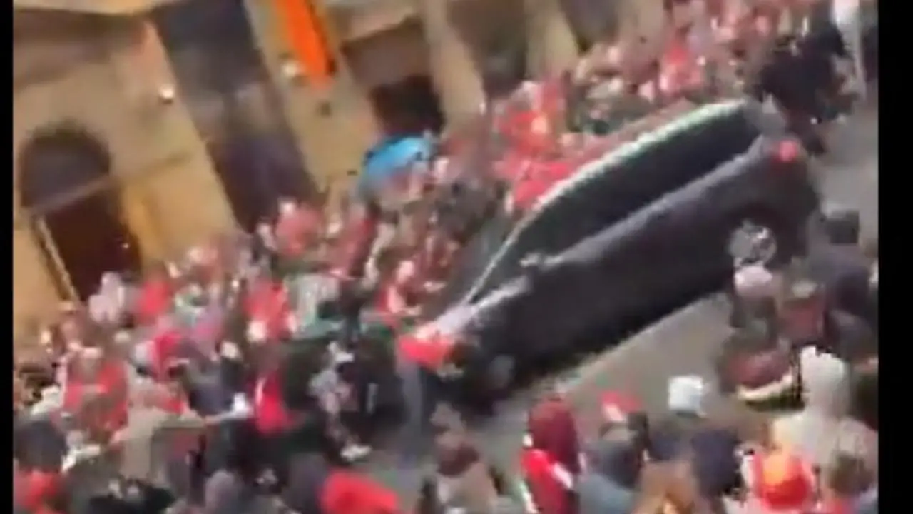 Un'automobile di grosse dimensioni ha travolto i tifosi del Liverpool, mentre oggi erano in festa in strada per celebrare la vittoria della Premier League. Diversi feriti. l'uomi. inglese di 53 anni di Liverpool è stato arrestato. Molti i video social dell'impatto, qui ripreso da un'angolatura ravvicinata