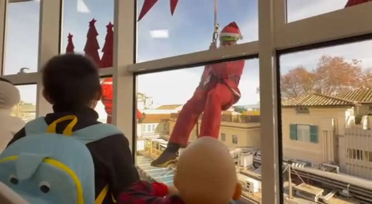 Babbi Natale si calano davanti al Bambino Gesù per i piccoli pazienti