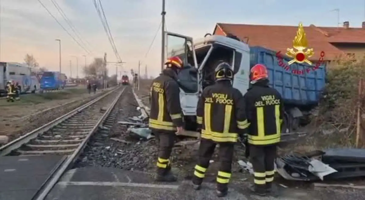 Incidente tra camion e treno a Chivasso: due feriti lievi
