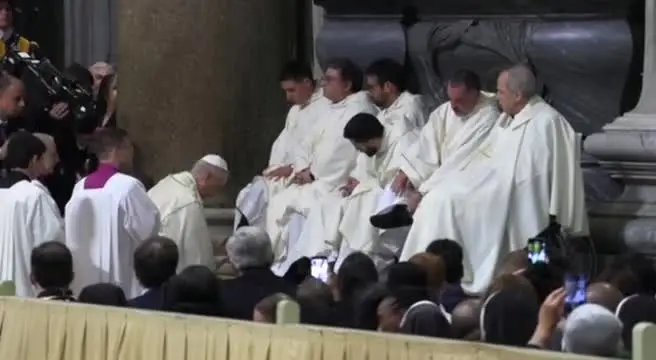 Papa Leone XIV celebra per la prima volta rito lavanda dei piedi