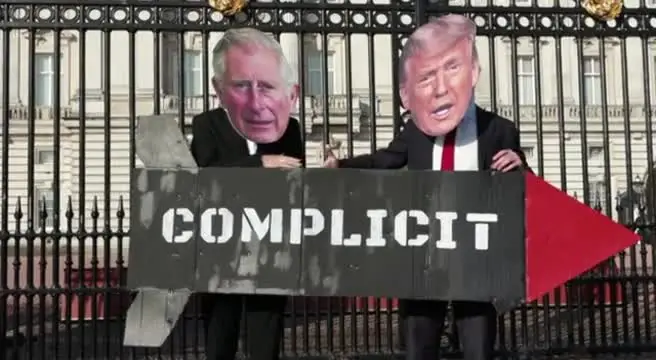 Protesta davanti a Buckingham Palace contro la visita del re da Trump