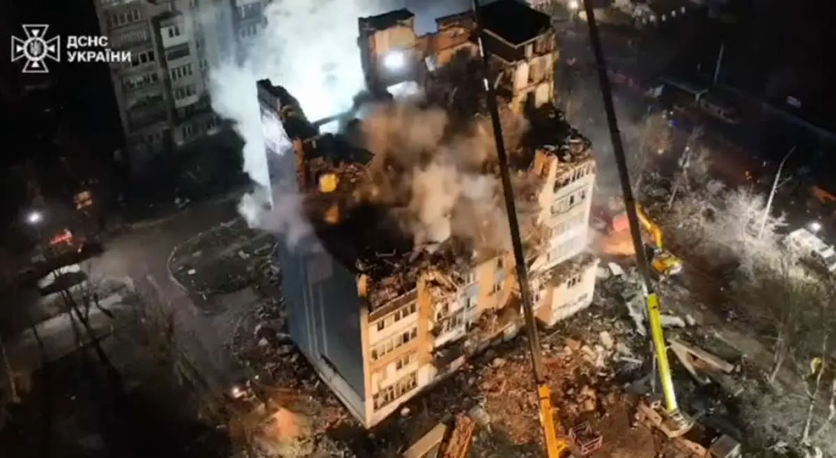 Ucraina, un palazzo sventrato da un attacco aereo russo a Ternopil