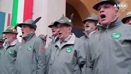 A Palazzo Chigi gli alpini cantano l'inno. E anche Meloni, nel finale, non rinuncia al "si'"