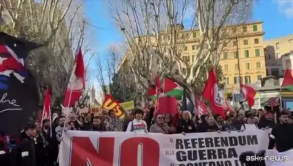 Il corteo dei centri sociali contro referendum, guerra e Governo a Roma