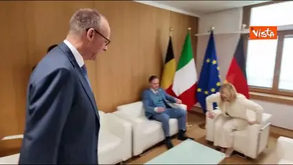 Al via il Consiglio europeo, l'arrivo di Meloni in total white