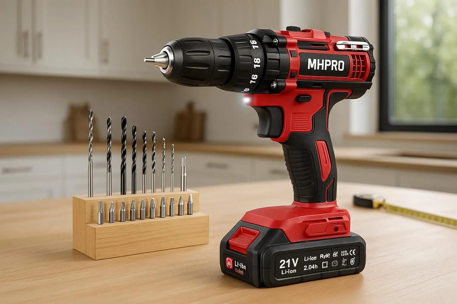 Scopri l'offerta Amazon sul trapano avvitatore a batteria di MHPRO: 41,99 euro, 42Nm, 22 accessori, luce LED e doppia velocità per il fai da te.