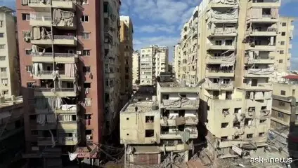 Beirut, 9 apr. (askanews) - Si vaga tra le macerie degli edifici distrutti dopo un attacco israeliano notturno nella periferia meridionale di Beirut. Il…