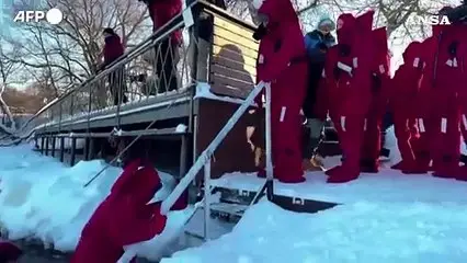 Bizzarrie invernali a Mosca, relax nelle acque ghiacciate della Moscova