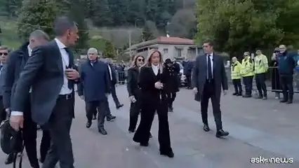 Pontida (Bg), 22 mar. (askanews) - E' arrivata anche la presidente del Consiglio Giorgia Meloni all'abbazia di San Giacomo a Pontida per i funerali di U…