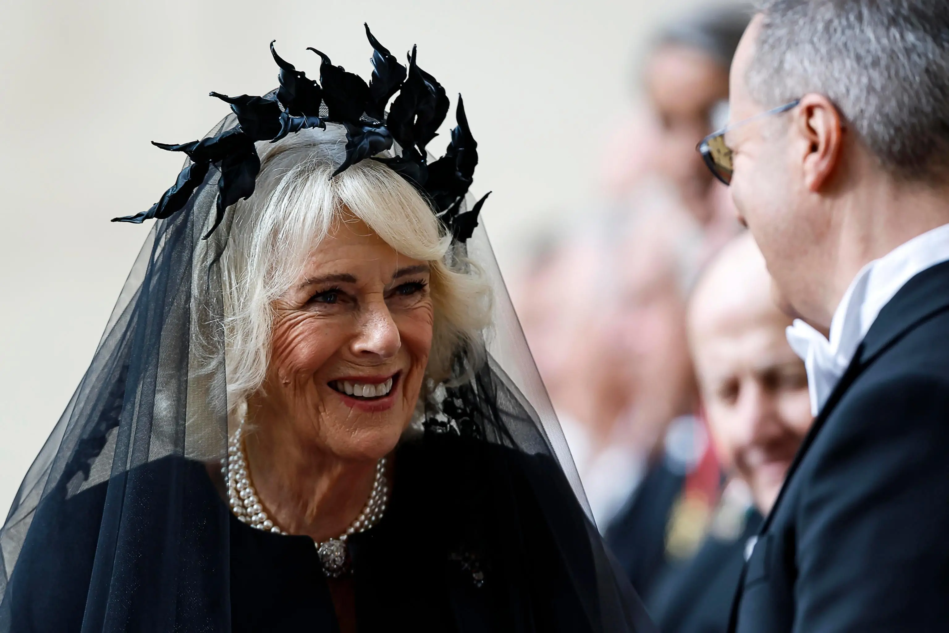 Camilla in nero per l’incontro col Papa: la regina onora il protocollo (con un tocco glamour)