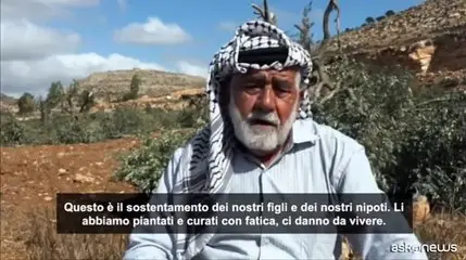 Khirbat Abu Falah (Cisgiordania), 6 ott. (askanews) - "Li piangerò per il resto della mia vita", dice Muhammad Suleiman, contadino palestinese del villaggio di Abu Falah, a nord-est di Ramallah, in Cisgiordania, mentre osserva i suoi ulivi tagliati durante un attacco notturno di coloni israeliani, a pochi giorni dall'inizio della stagione del raccolto. "Un albero che loda il Signore dei mondi, cosa mai avrà fatto loro?! Questo è il sostentamento dei nostri figli e dei nostri nipoti. Li abbiamo piantati e curati con fatica, ci danno da vivere. Eppure loro vengono e fanno questo! Che Dio si vendichi ancora una volta di loro", dice l'anziano agricoltore. "L'ulivo non è diverso dall'anima. L'albero e il suo padrone sono un solo corpo. Se mi avessero ucciso e si fossero allontanati dall'albero, sarebbe stato meglio che vederlo così con i miei occhi. Me ne andrò, ma piangerò questi alberi per tutto il resto della mia vita". Fonti locali hanno riferito che i coloni hanno attaccato la pianura di Marj Sa'i, abbattendo 120 ulivi, alcuni con oltre sessant'anni di vita , appartenenti agli abitanti del villaggio.