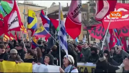 Corteo pro Maduro a Roma sfila verso l'Ambasciata Usa con le bandiere Venezuelane