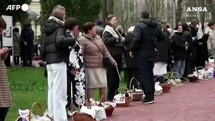 Fedeli in chiesa per la benedizione dei cestini pasquali a Kiev
