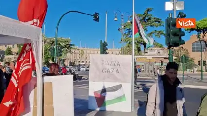 Global Sumud Flotilla, il presidio pro Palestina a piazza dei Cinquecento a Roma