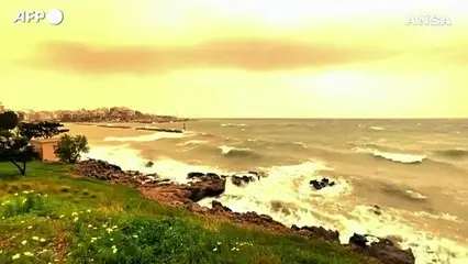 Creta, una tempesta di sabbia africana tinge il cielo di arancione