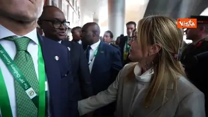 La premier Meloni arriva alla riunione dell'Unione Africana, incontrando capi di Stato e di Governo