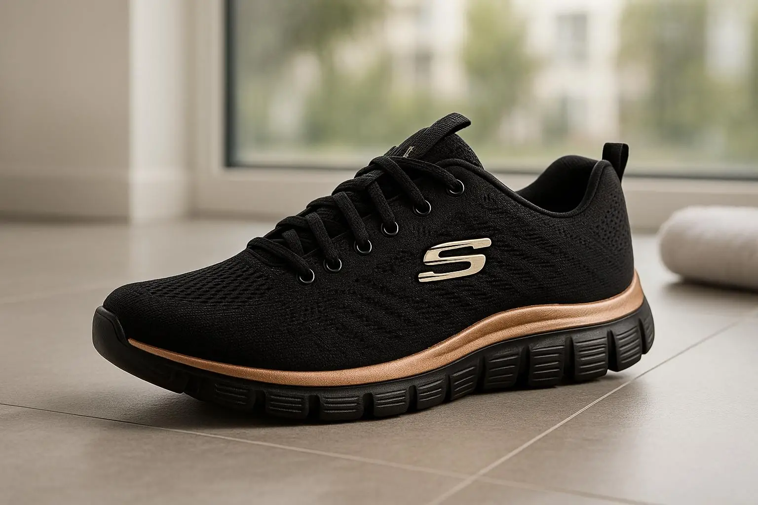 Scopri le Skechers Graceful Get Connected da donna in offerta su Amazon: sneakers nere con dettagli oro rosa, comfort e risparmio del 22%.