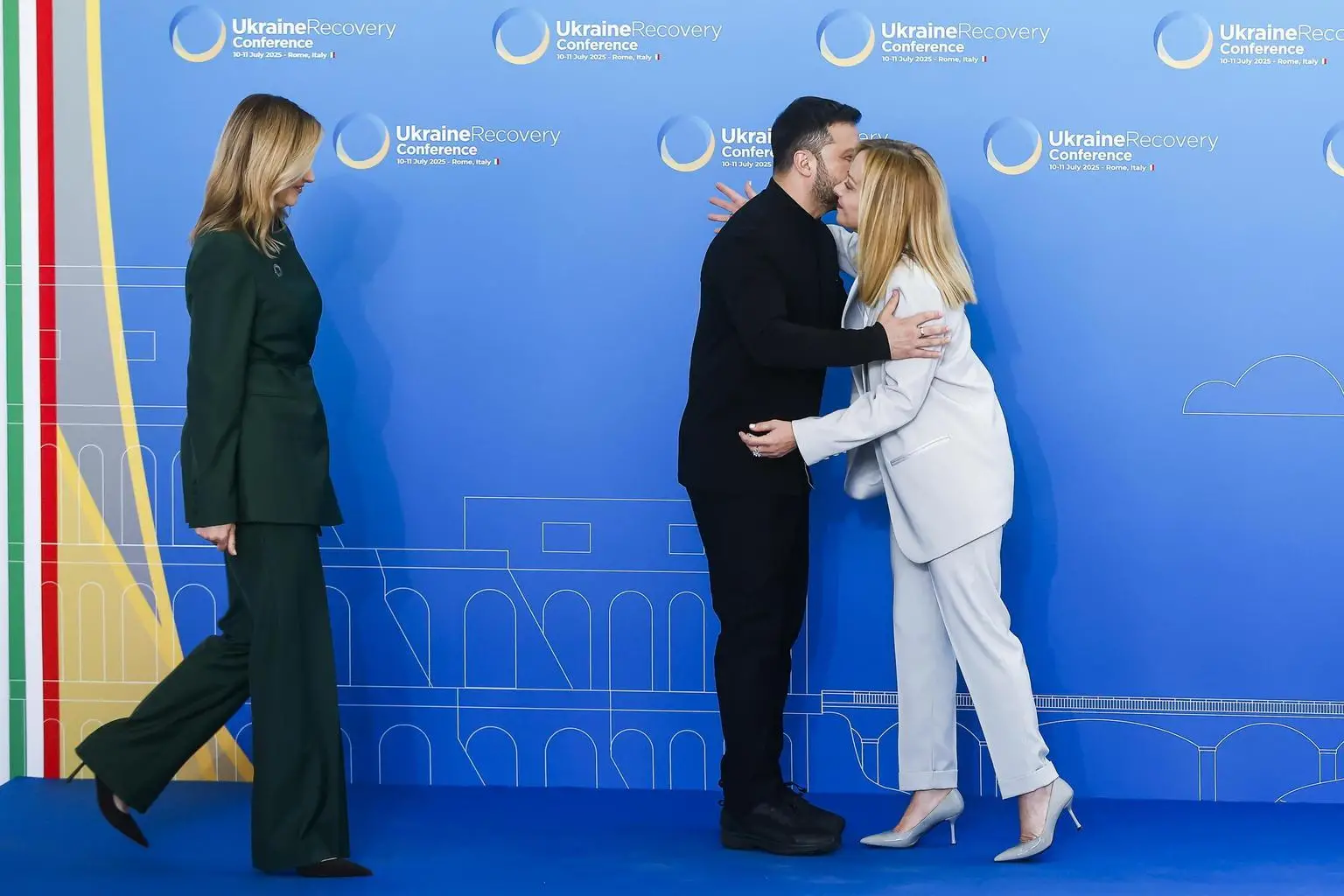 Meloni accoglie i leader, l'abbraccio con Zelensky