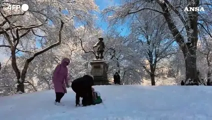 New York si veste di bianco, e a Central Park c'e' anche chi scia