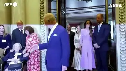 Al ricevimento Carlo III d'Inghilterra, la regina Camilla e i principi del Galles William e Kate