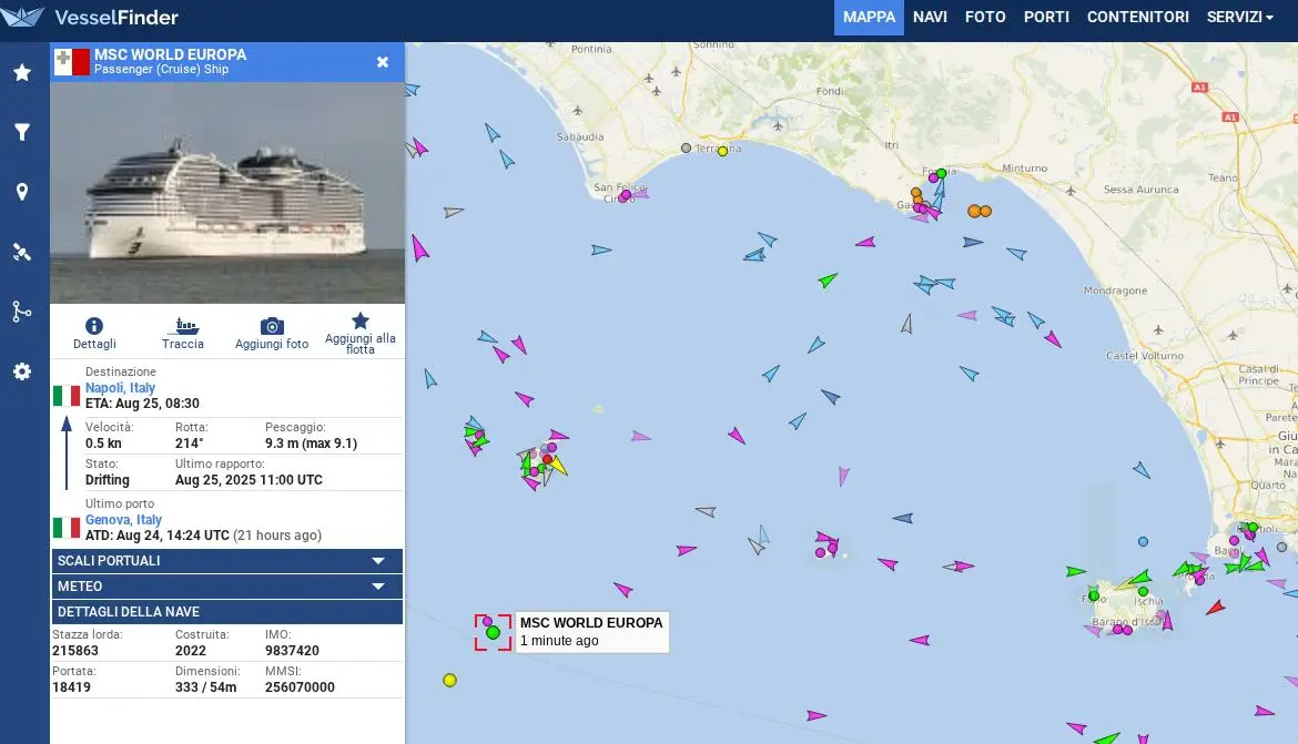 Ponza: avaria per nave Msc con 8.500 persone a bordo