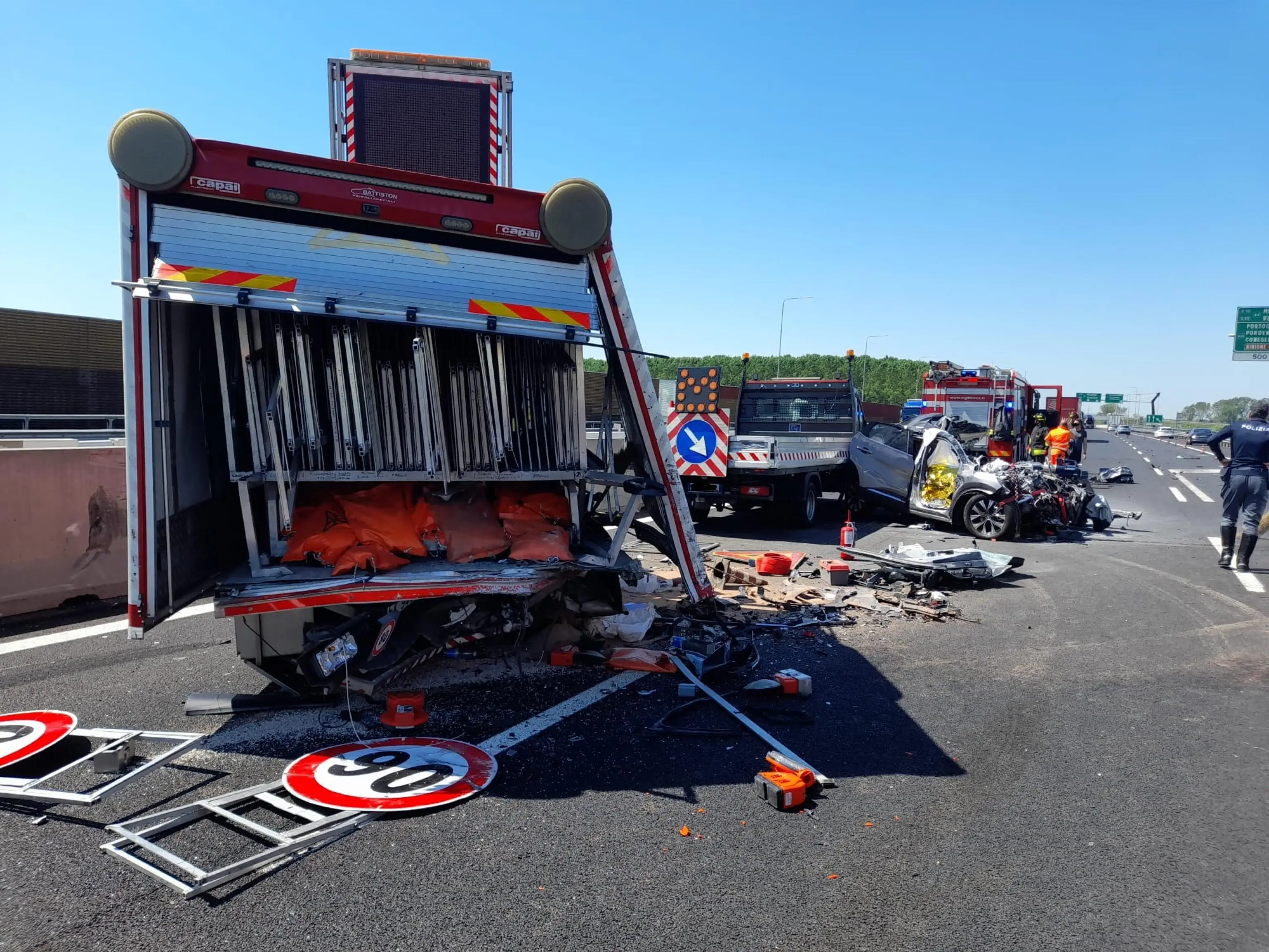 Portogruaro, auto piomba su cantiere autostradale: due morti in A4
