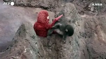 Punch, il cucciolo di macaco abbandonato dalla madre che si consola con un peluche