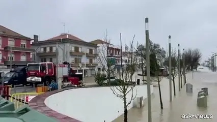 Strade allagate a sud di Lisbona dopo passaggio tempesta Leonardo