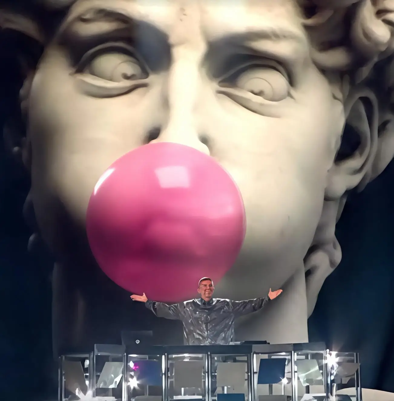 Il dj in scena con un David di Michelangelo animato conquista il televoto. Dovrà “duellare“ con Corsi. Polemiche per versi spinti e la presenza di Israele.