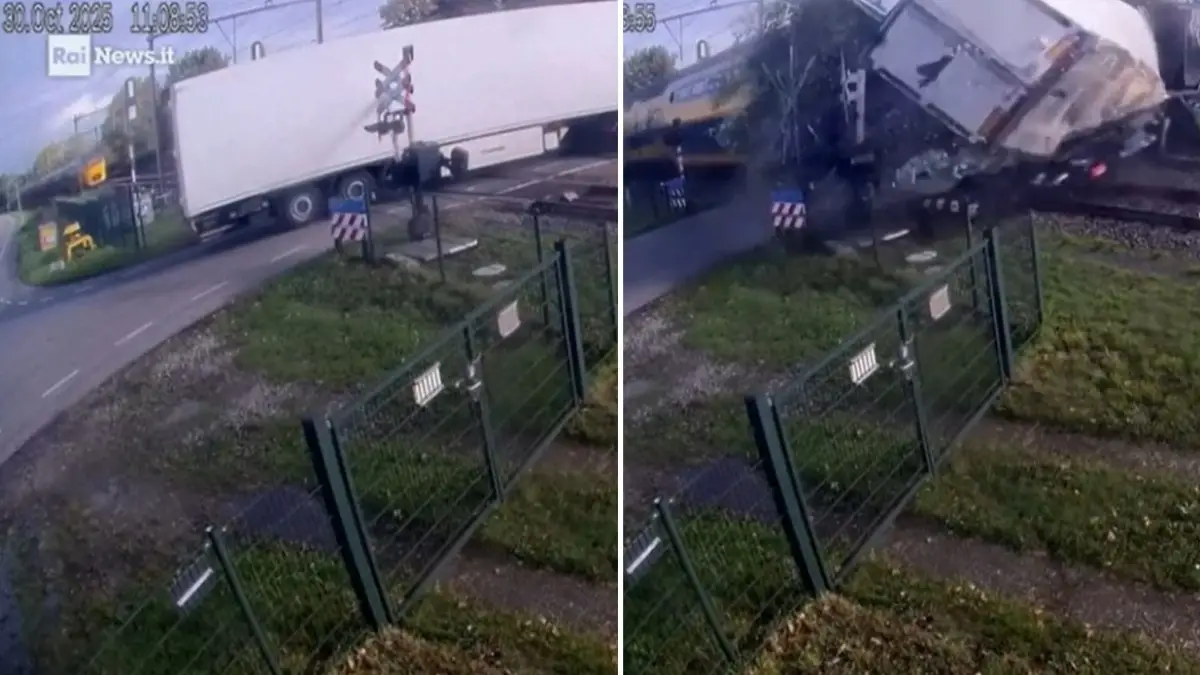 Scontro devastante. Un treno passeggeri ha travolto un camion rimasto bloccato a un passaggio a livello. Cinque persone sono rimaste ferite in modo lieve, tra cui l’autista, e la circolazione ferroviaria è stata sospesa. L’incidente è avvenuto giovedì 30 ottobre in tarda mattinata. Le immagini diffuse da ProRail mostrano l’intercity che squarcia il semirimorchio, spargendo… Read More »Treno a tutta velocità travolge in pieno camion fermo sui binari: video e foto choc L'articolo Treno a tutta velocità travolge in pieno camion fermo sui binari: video e foto choc proviene da The Social Post.