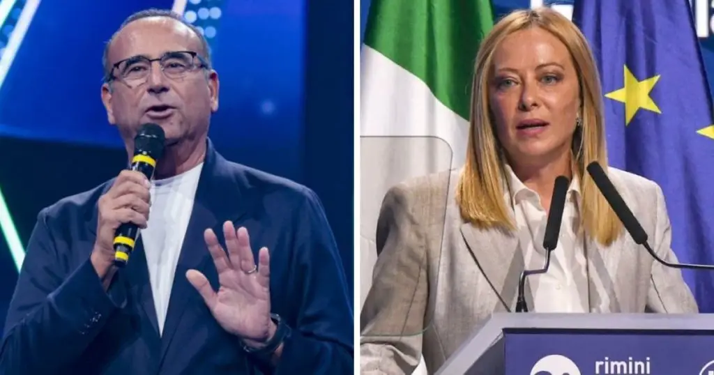 Carlo Conti smentisce la presenza di Giorgia Meloni al Festival di Sanremo: “Fake news che rasenta la fantascienza”