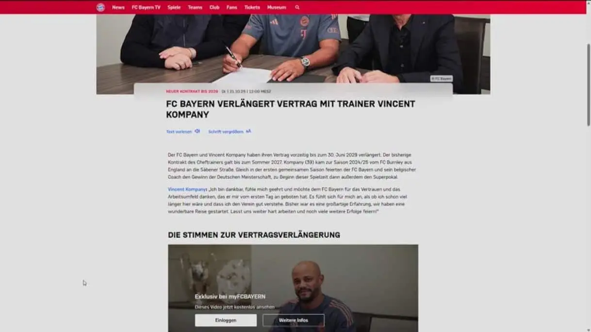 Bayern Monaco, Kompany rinnova fino al 2029