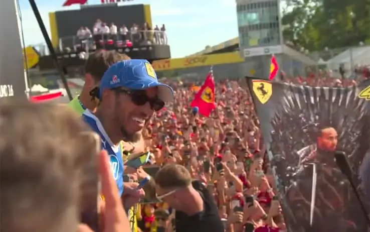 Al termine del suo primo GP d'Italia con la Ferrari, chiuso al 6° posto, Lewis Hamilton si è concesso alla marea rossa presente in pista e ha ricevuto calore e affetto da migliaia di tifosi. Guarda il video. La F1 torna a Baku dal 19 al 21 settembre: live su Sky e in streaming su NOW F1, GP ITALIA: CRONACA E HIGHLIGHTS