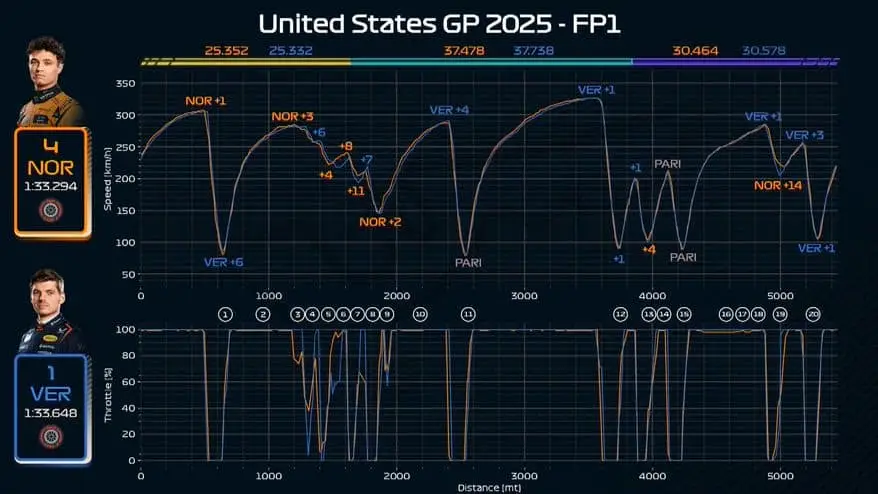 F1 ad Austin, Norris e Verstappen a confronto: l'analisi